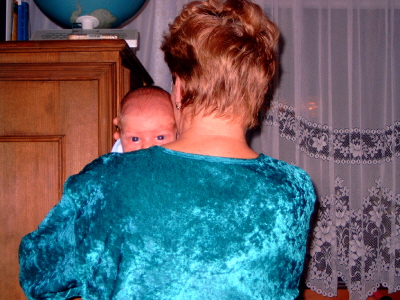 meine Oma tanzt mit mir und ich bin grad zweieinhalb Wochen alt